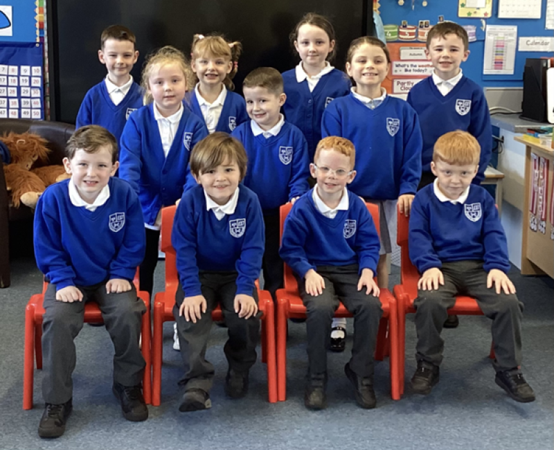 Our teacher is Mrs Kernohan and our classroom assistants are Miss McGowan, Mrs Aiken, and Mr Wright. We work hard in class, in Numeracy and Literacy, we do lots of fun and practical activities to help us with our learning.